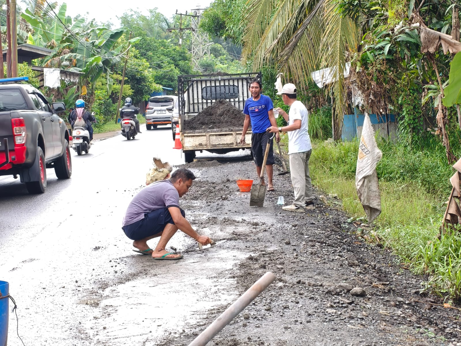 Supratman Kepala Desa Pugaan menyampaikan bahwa perbaikan jalan ini dilakukan sebagai langkah darurat demi mengurangi risiko kecelakaan, mengingat kondisi jalan yang berlubang dan membahayakan.